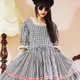 Description: F1037(Vintage)黑色白色格纹大波浪裙摆古着洋装(婚礼/野餐/派对)