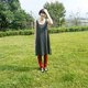 整件宽版设计,附有绑带小绳,正式时可以系起它;想要拉出腰身时,也可以系起它,天气稍凉时,加上小外套就出门拉:)