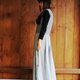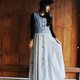 Description: F848(Vintage)蓝色拼接格纹木质钮扣棉质背心洋装(奥地利传统Dirndl)