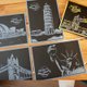 4张各国地标夜景图(20x14cm)+1支简易木制刮棒,