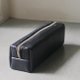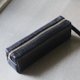 此笔袋以 1.6mm 厚度的偏软进口皮革制成,黑色皮革带着低调的光泽,两侧立体感十足的设计,简约经典的造型。