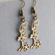 This pair of earrings features my graphic illustration of flowers and maple leafs. The jewelry is made of thin brass sheet material and cut every detail by hand. Hanging with brass earring wires.