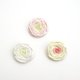 这是一款直径约 3.5 厘米的陶瓷花饰胸针,以陆莲花为造型。 图片上方:pink 图片左下方:white 图片右下方:yellow 整体色调柔和淡雅,中央则点缀着较深的色彩。 产地/制作方式 产地:日本 手工制作