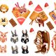 各式甜点兔的集合 不知道好不好吃咧 自剪贴纸、大约B6尺寸(约12*18cm) *自剪贴纸=需要自己DIY剪的贴纸唷 不喜欢的客人请斟酌购买 : ) 产地/制造方式 台湾 哞咪画的
