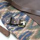 交叉的皮带设计用于固定卷缩的袋口,同时令包包增添一份特别。