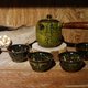 在陶坯上施以一毫米以上的厚釉,使得烧成釉面温暖润泽,呈现灰中带绿的淡雅色调