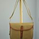 All edges are lined in tan leather, and shoulder strap is fitted to bag with bridle leather.