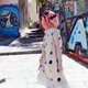 * 纯棉麻圆点点印花面料为德国进口, 蓝色小碎花为纯麻面料, 透气舒适, 非常适合春夏穿着