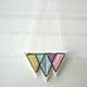 这是三原色刺绣不织布项链的变奏,运用了教堂上的花窗琉璃的灵感,选用了粉色系列让它更有亲和力,而黑线让颜色更突出。
