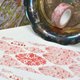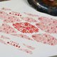 手工盖印一直都是印度衣物上特有的技法,将同一图样拆解成不同单色的花纹,将单色颜料涂抹在刻好的章上,然后反复对准盖印在布料上。