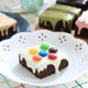 - 白巧克力铺上M&M彩色巧克力,让可爱的布朗尼带来好心情吧。