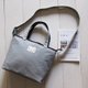 NO 400 :马卡龙系列-浅灰+深咖啡中型帆布托特包 (拉链开口款+可调式长背带)