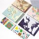 每款附赠两大张装饰贴,每大张尺寸7.5x15cm,多元贴纸包括各国国旗贴,各大洲透明贴纸,造型标记贴..等。
