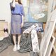 / 商品说明:蓝色格网针织拼接铅笔裙,布底为弹性良好针织布有前挡片内里。