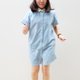 Use a soft embroidered on denim. Decorated with contrasting collar white shirt dress look softer.