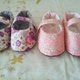 材料: 欧洲细致棉布 颜色清爽 婴儿鞋的鞋体和鞋底内均加上一层铺棉,保护宝宝柔嫩的小脚ㄚ。 鞋底为羊毛毡布,有加强保暖的功能。 **注: 请以照片中的表布花色为主,里布与鞋底羊毛毡布的花色为随机搭配喔 尺寸: 适合六个月内的宝宝;鞋底长度为11 cm 洗涤说明: 以手洗方式轻轻搓揉布面脏污处,自然晾干,或放入洗衣袋后丢入洗衣机脱水,再用熨斗以中温整烫。