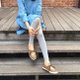 有着类似芭蕾舞鞋的开口绑带设计,但是比起芭蕾舞鞋方窄的楦头,春柿日有着圆润可爱的鞋楦,像两颗小柿子一样,比起直接穿鞋子,其实我们更建议搭配着袜子的穿着,让这双鞋的开口绑带造型更加显目。