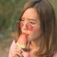 圆型 粉红-灰 太阳眼镜 附上心形状外挂夹片