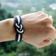 水手结手带由三种颜色的棉绳制作,配上两端合金扣和品牌的皮革小牌。