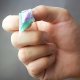 Green on the surface, purple, it is a sharp pyramid-shaped brooch that one side is longer that it was confined Aurora, and more at Crystal resin.