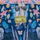 由水彩手工绘制而成,是一条充满花朵、树叶、快乐动物的丝巾