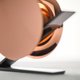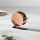 为了让胶台稳定不晃动且可单手使用,此设计构造上的金属质量极高,但透过镜面圆盘内缩曲线的巧妙设计,视觉上却轻盈无比,营造出高反差的对比巧思。特别是圆盘微妙的内凹曲面在抛光工艺上可说是极大的挑战,于设计团队的坚持下耗时九个月开发,终于呈现出毫无妥协的设计。