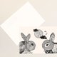 / 商品说明及故事 / 月圆人团圆,两兔望圆月 / 尺寸/ 10.5x14.8 (cm) / 材质 / 幻象卡纸220P / 设计师及品牌简介 / “卡笋”,与传统工艺技法卡榫同音 希望每一件设计能和你紧紧贴近 设计的小物都能如同笋子 等待破土成为翠绿的竹子