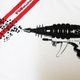 正面是把复古怀旧的枪,射出去的不是子弹而是毫无威力的喷墨,T-Shirt背面有个"别射机器人,机器人是我们好朋友"的标语,有发现这个机器人是谁吗?他就是有个有趣名字的"噗滋噗滋喔"!