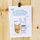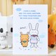 明信片正面图案是小兔子与小鹿手牵手的意境。