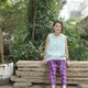 这块布料的印花鲜明好看,配个素一点轻一点颜色的上衣,绝对亮眼喔!