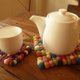 *彩色的毛球排列成实用的杯垫,色彩缤纷可爱!
