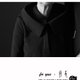 以简单有纹理的布料设计出一件有外套风格的上衣式佯装,其最大特色在于可拆取的立体帽子,佯装本身与帽子的领子形成双重领子效果,帽子为同布拼接出的立体剪裁。