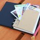 内附牛皮双面折页纸,具收纳功能,可夹发票、收据等小物。