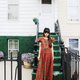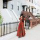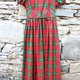 Description: F1078(Vintage)红色质感格纹独特长版古着洋装(婚礼/野餐/派对)