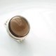 又复古、又时尚的茶晶戒指,大大的蛋面透着晶亮光泽,戒身款式简约有型,茶晶的品质很好,目视没什么瑕疵,裸石接近银台包边的地方有一条细细的刮痕,可能是包镶水晶时划到的,不仔细看会忽略,从戒指正面也看不到,请不介意者再下标喔!