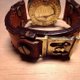 末日系列:以工业风+重金属风格为设计理念,表芯采用5针(3大针+2小针)附日月盘机芯,两小针分别为60秒与24小时计时;此系列背面统一为品牌LOGO,表壳与龙头以脱蜡法铸造黄铜后,手工由粗到细精磨8-12次不电镀,刻意不均匀染黑设计为经历长久使用后的状态,表面为手工蚀刻制成,小孔洞内可观赏到摆轮运作情形,12钟点与指针也利用图布不均的油漆营造出老件特色。