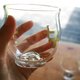 玻璃杯底座向内隆起的圆弧曲线,在灯光下闪闪发光