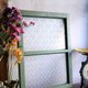 很大一件老古董窗户,斑驳的复古绿色边框,稀有的花纹玻璃面,整体非常美