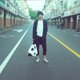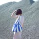 LLANO 奶牛琵琶印花帆布大包送同款束口袋 背袋 耐用 大容量街头文艺 蓝色条纹