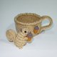 以麻绳人手勾织小松鼠连咖啡杯形小花盆,或可作杂物兜。小松鼠可选择缝上杯耳或独立分开。 材质:麻绳、绣花线 产地/制造方式 香港手工制作
