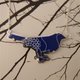 在蓝底印花白色植物的塑料板上,截取鸟类的剪影