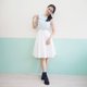 S:66cm M:69cm L:71cm 裙长: 62cm 产地/制造方式: 香港 图一是紫蓝, 图二是深蓝,图三是粉红, 图四是浅灰色. 图五是白色