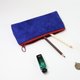 品名:手工制作蓝色麂皮布料X红色棉布笔袋