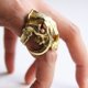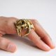 This ring features a skull detail of a Saber Tooth Tiger. Another piece of jewelry that inspired from the wild animal anatomy. The ring is made from our original mold with great carving details of skeleton both the front and back sides. The object is designed to leave space inside for fingers to wearing for a ring, and can be adjustable.