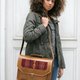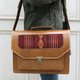 此款包包为经典的old-school风格,使用硬质牛皮手工制成。开关为金属叉扣设计。包内有纯棉内里的拉链暗袋,可装手机等贵重物品。纯手工缝制而成的民族风花纹织布,每一个都是独特的限量版。包包可容纳13寸的笔记型电脑及A4大小文件。