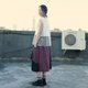 紫色的和风格子布料配上有纹路的黑麻布料,给人一种稳重的感觉喔!故意做得像是一件半身围裙,大大的口袋里是不是很适合放铲子呢!裙子几乎360度都可以当正面喔!是不是很划算~~~