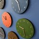 Thehaki三明治圆型皮革挂钟,三明治贴皮式工法将质感人造皮革平贴于中间层泡棉上,