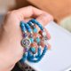 色泽漂亮的土耳其蓝磷灰石念珠,有带白纹喔。