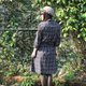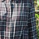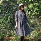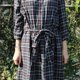 Description: (Vintage)深灰色质感格纹附腰绑带棉质七分袖古着洋装