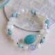 天河石+珍珠贝+海蓝宝+蓝玉髓双圈手链